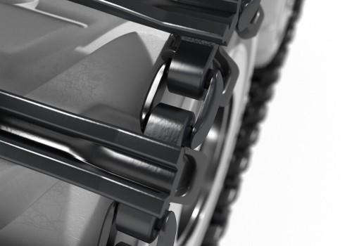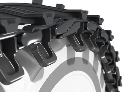 - Desenvolvida para alto desempenho o ano todo, ela enfrenta com facilidade neve e lama, resiste a terrenos rochosos e oferece aderência excepcional com dupla fileira de dentes e extensões de 15 mm.